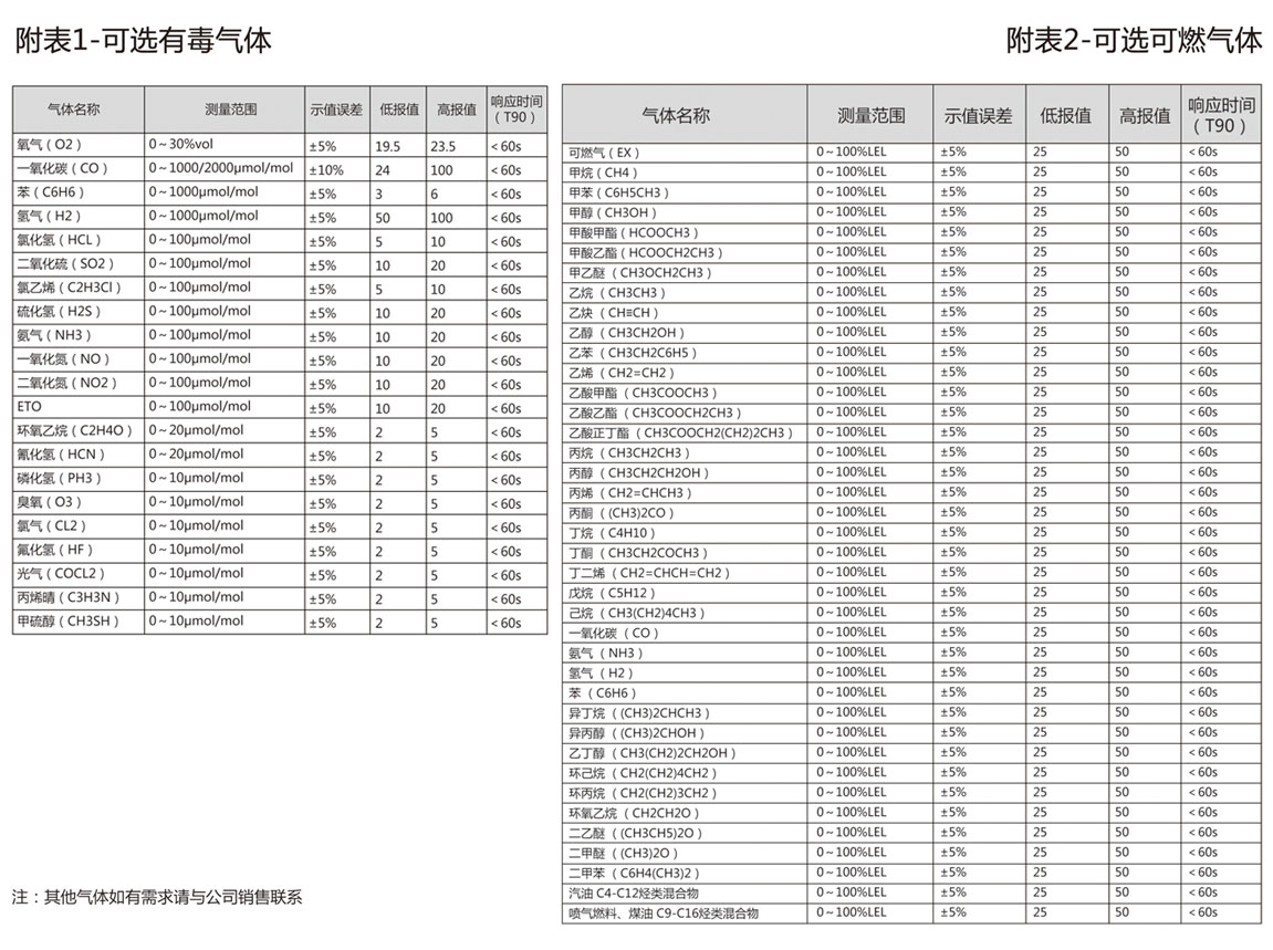 適用氣體:可燃、有毒和揮發(fā)性氣體